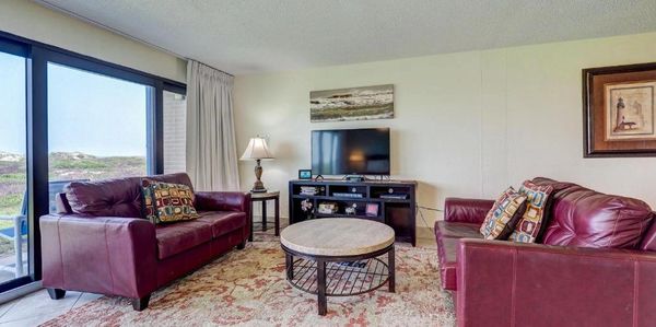 2BR/2BA.Second floor beachside condo. This unit sleeps 6 guests and comes with 1 king bed, 2 twin beds, and a pull out sofa. This pirate themed condo is on the north side of the complex which offers a beautiful ocean view and dune views.